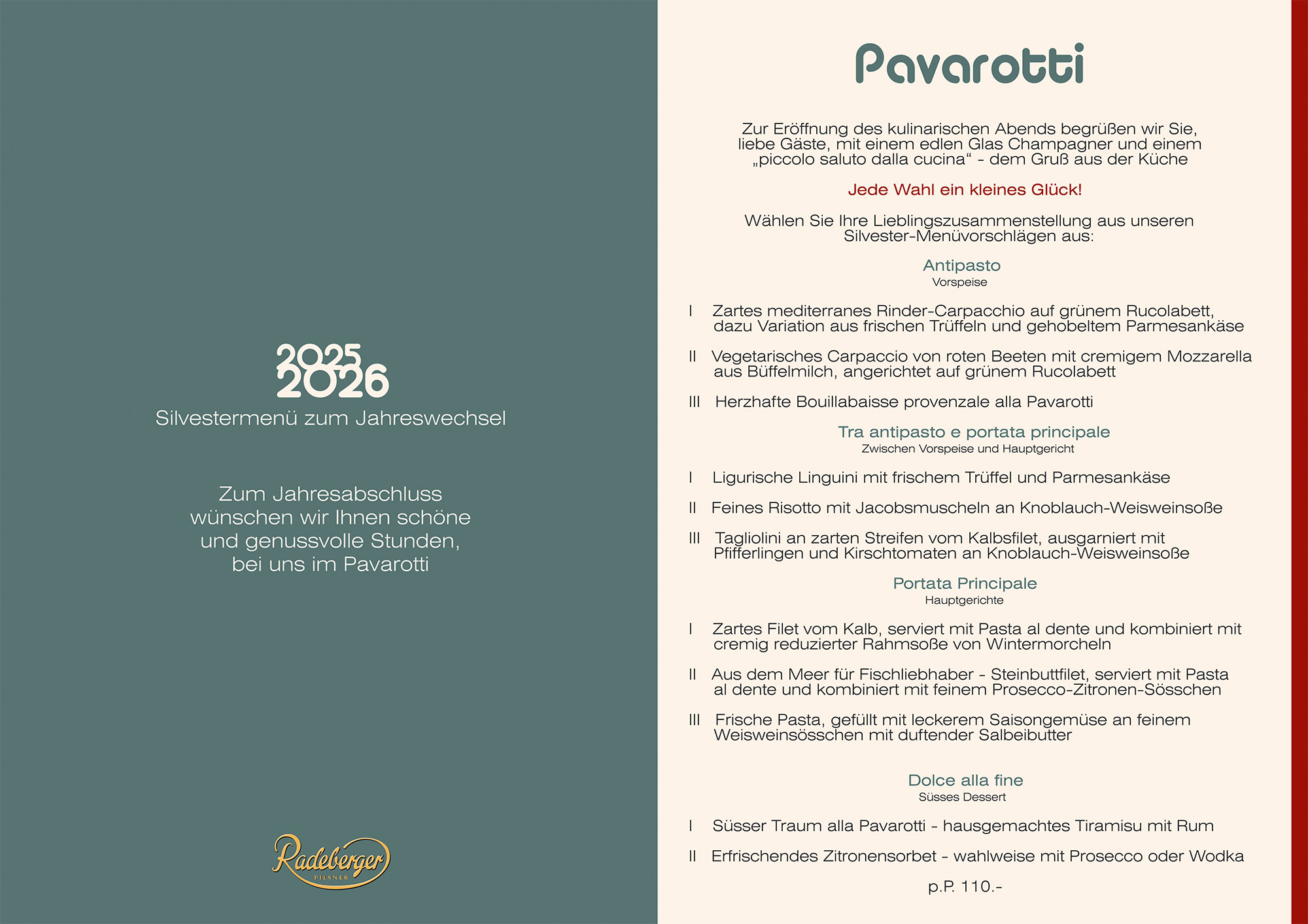 31.12. Silvestermenü 17.00 – 22.00 Uhr